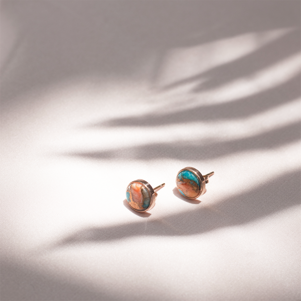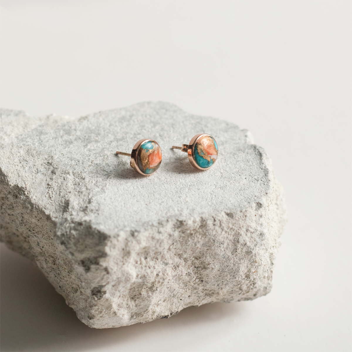 Turquoise Oyster Copper Stone Ear Studs (Round)
