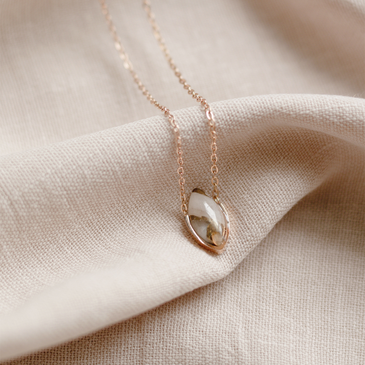 Delicate pieces making strong statements, the Gaia Stone Necklaces come in an exquisite selection of round, marquis and teardrop cut natural stones. Modern design and timeless elegance come together in these pendants, creating a stunning center piece to any look. A single natural stone is framed delicately and suspended from a link chain.