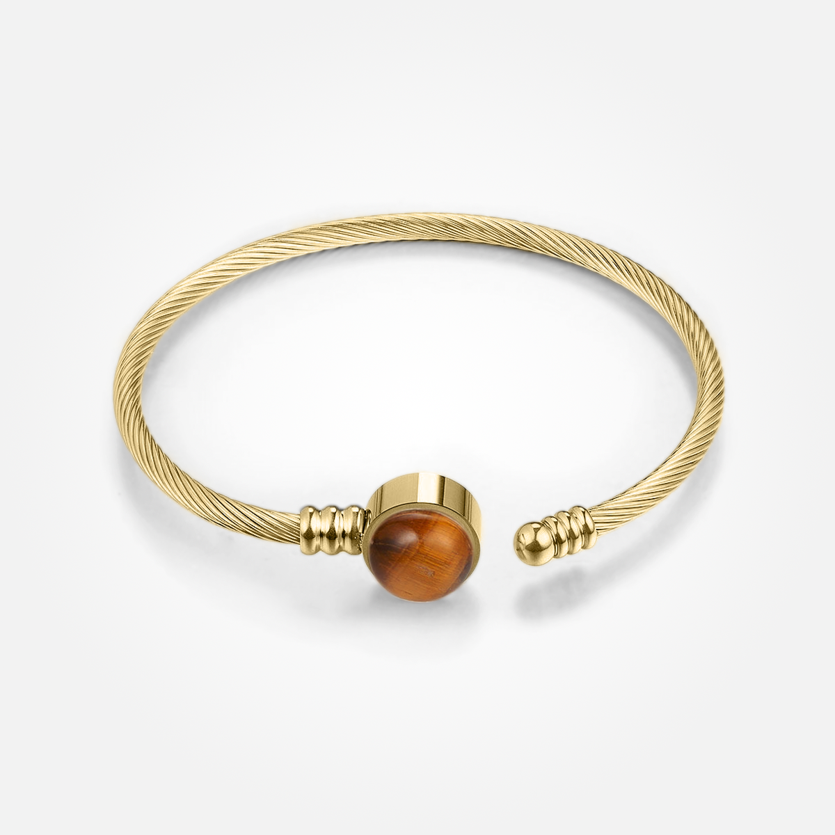 With striking golds within earthy browns, the Tiger Eye stone encapsulates the rays of the sun, radiating effortless allure and vivacity.