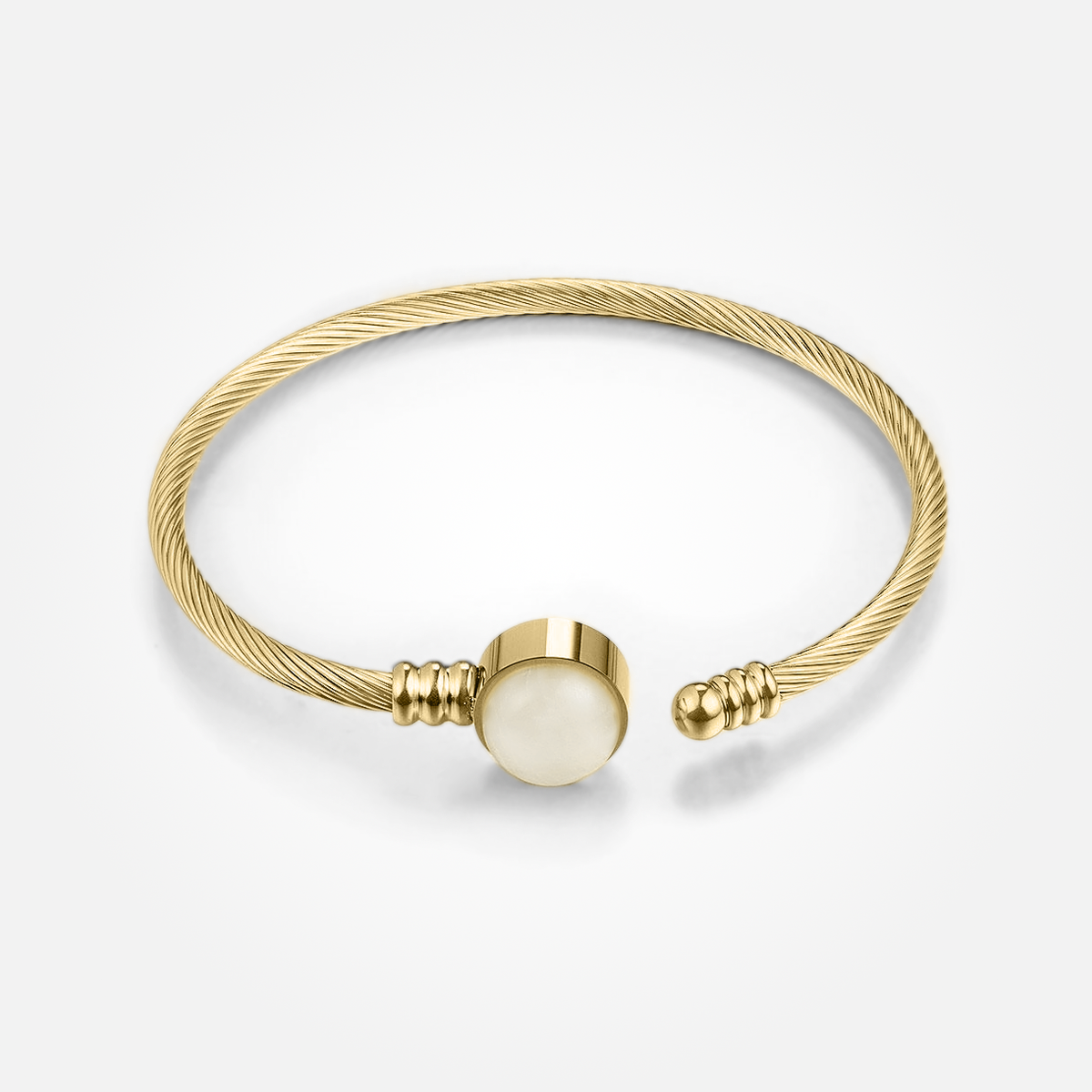 Adorned with a single luminous stone, this beautiful rope textured cuff and its ornate detailing offers an old Maldivian touch, with a sleek and modern finish.