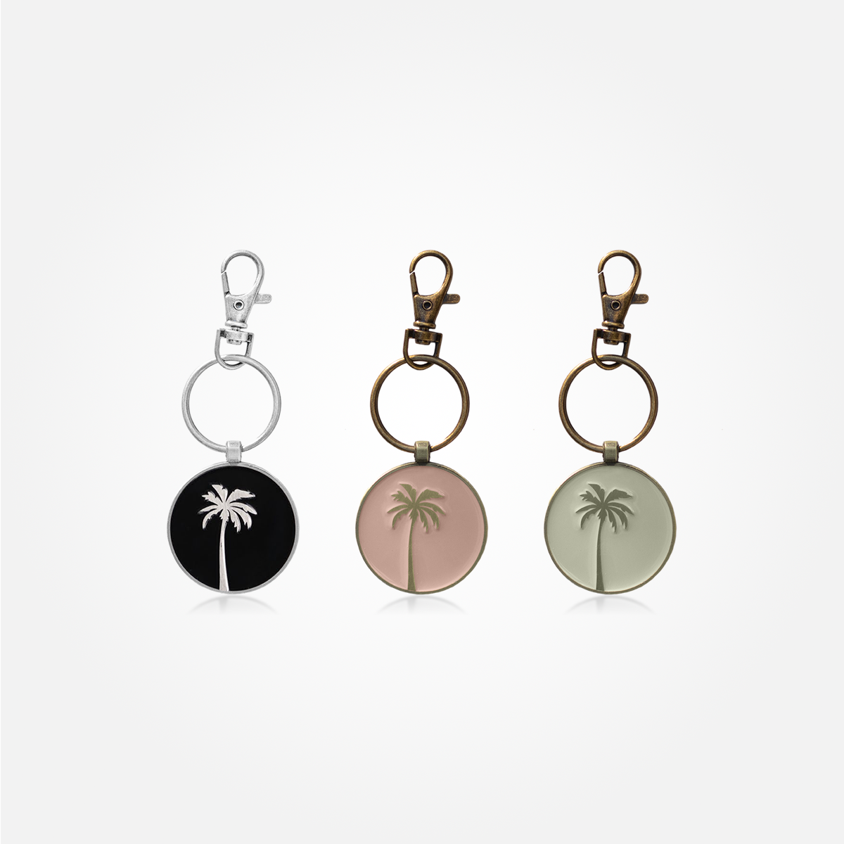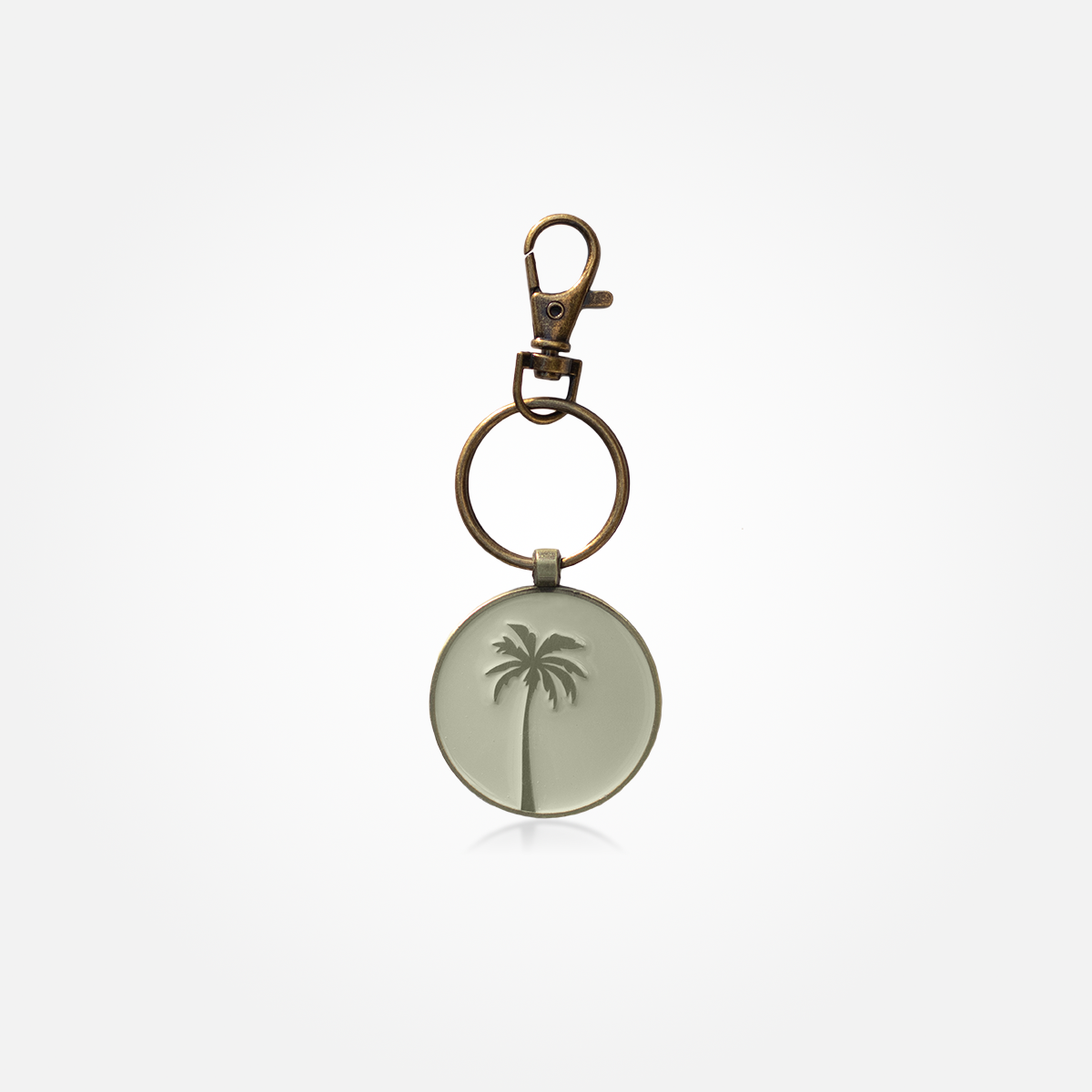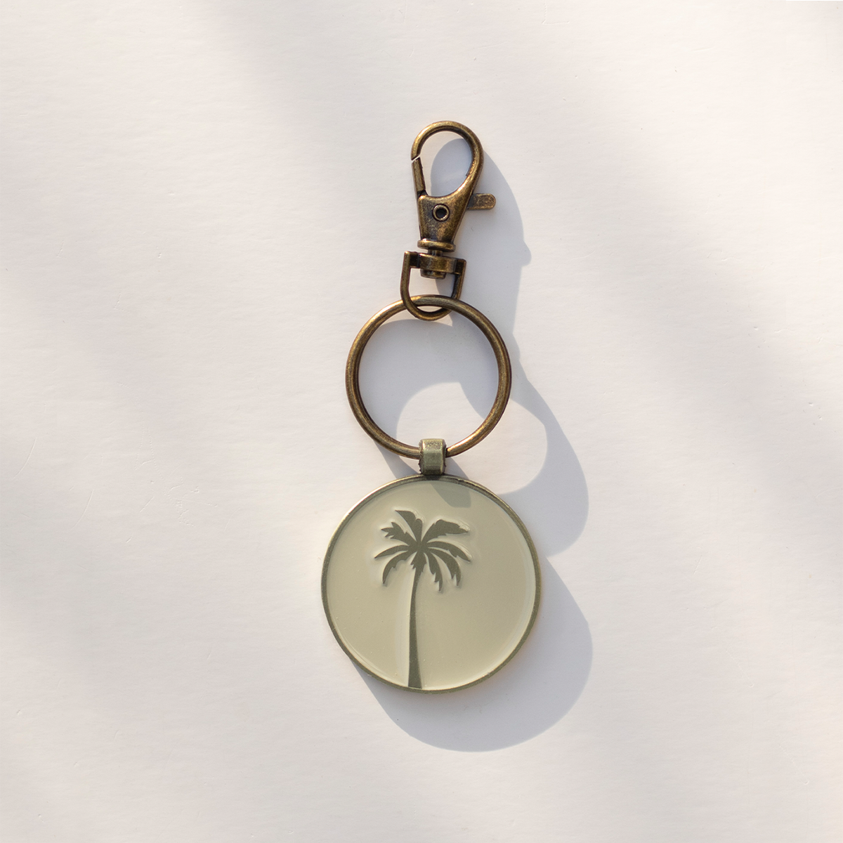 Coconut Palm Round Keychain - Antique Gold / Beige